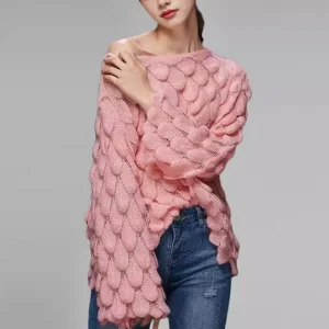 Women Fashion Loose Long-Sleeved Hollow Knitted Sweater