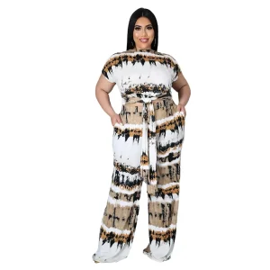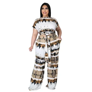 Women Fashion Casual Contrast Color Slim-Fit Short-Sleeeve T-Shirt High Waist Pants Two-Piece Set