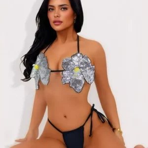 - Dopamine: Black Lace-Up White Floral Swimsuit
